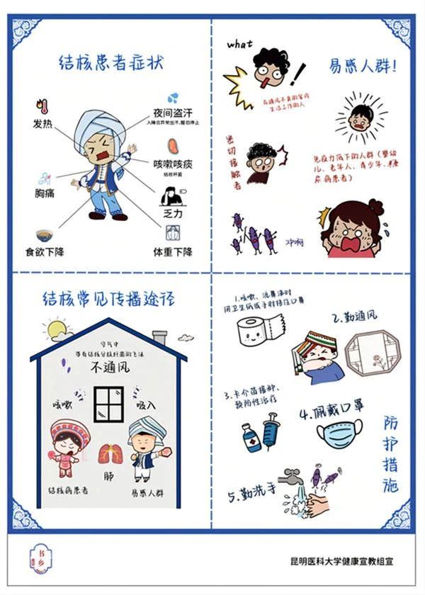 图一:《白族结核四格漫画》作者:昆明医科大学公共卫生学院健康科普小组