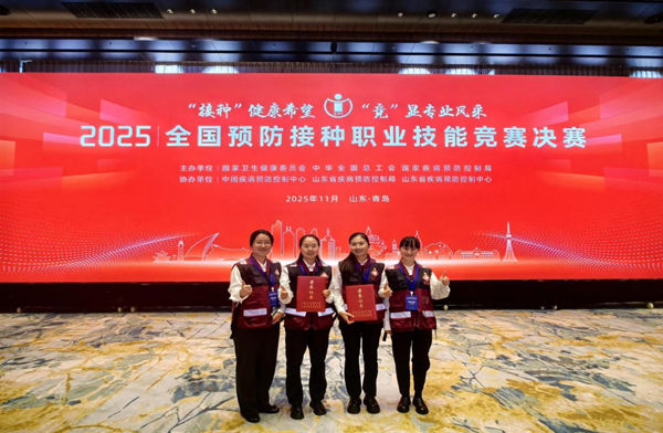 11月10日至12日,2025年全国预防接种职业技能竞赛决赛在山东青岛举行,本次竞赛由国家卫生健康委、中华全国总工会、国家疾控局联合主办。31个省(自治区、直辖市)和新疆生产建设兵团共32支队伍参赛,我省代表队斩获团体三等奖,2名代表分获个人三等奖和个人优秀奖。