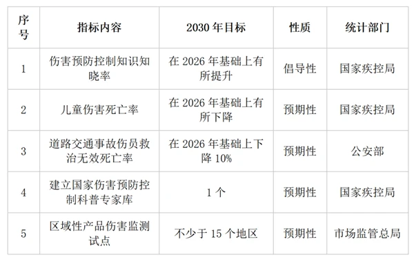 伤害预防控制行动计划(2026—2030年)
