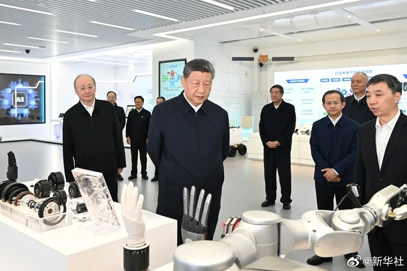 9日上午,习近平总书记在位于北京亦庄的国家信创园考察科技创新工作,走进展厅察看人工智能、机器人等科技创新成果展示,并同科研人员和科技企业负责人代表亲切交流。习近平说,建设社会主义现代化强国,关键在科技自立自强。要充分发挥我们国家集中力量办大事的优势,把各种优质要素集合起来攻关,加快解决突出短板问题,实现我们的战略目标。(文字记者:张晓松、朱基钗;摄影记者:谢环驰、燕雁、盛佳鹏)