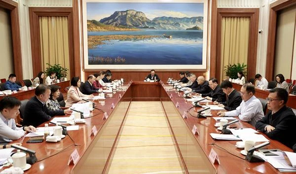 受省委书记王宁委托,省委副书记、省长王予波,省委副书记、昆明市委书记刘洪建,省政协主席刘晓凯与调研组在昆明进行工作交流。
