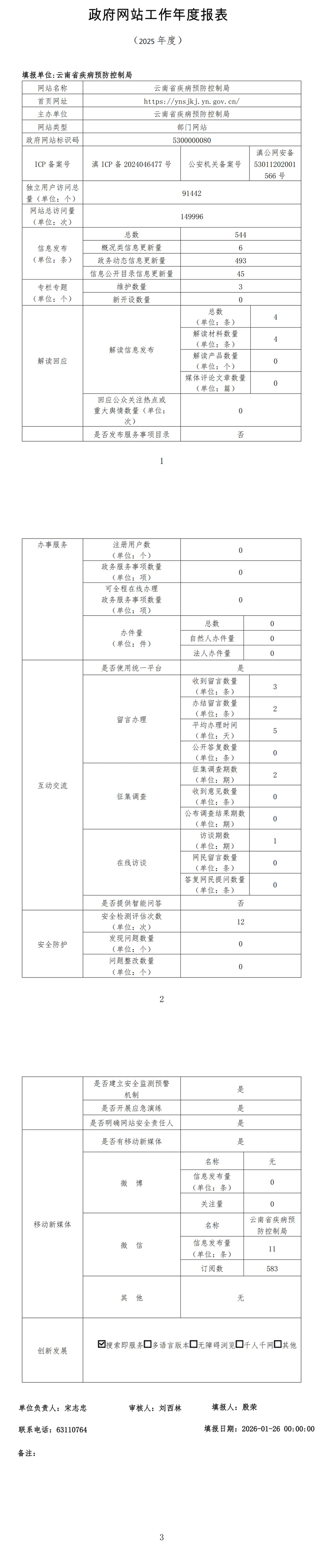 云南省疾病预防控制局网站工作年度报表(2025年度)
